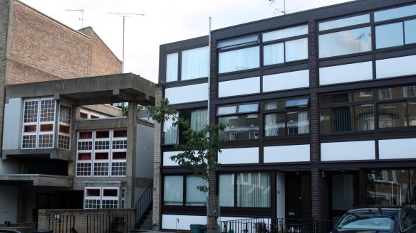 The following photographs were taken on a walking tour of Modernist Hampstead organised last year by the National Trust’s 2 Willow Road (see my earlier post about this property). This is by no means an exhaustive list of Hampstead’s modernist houses, but gives some idea of what is out there and what you could expect if you go on a similar tour (a number of these were run last summer and I expect will run again this year – I’ll keep an eye out for you!). A self-guided walking tour brochure containing most of these houses is also available at the property for a paltry sum. You may also like to visit David Anderson’s excellent site listing modern style housing in London, which has a more extensive listing for Hampstead: http://homepage.mac.com/doive/houses/london.html