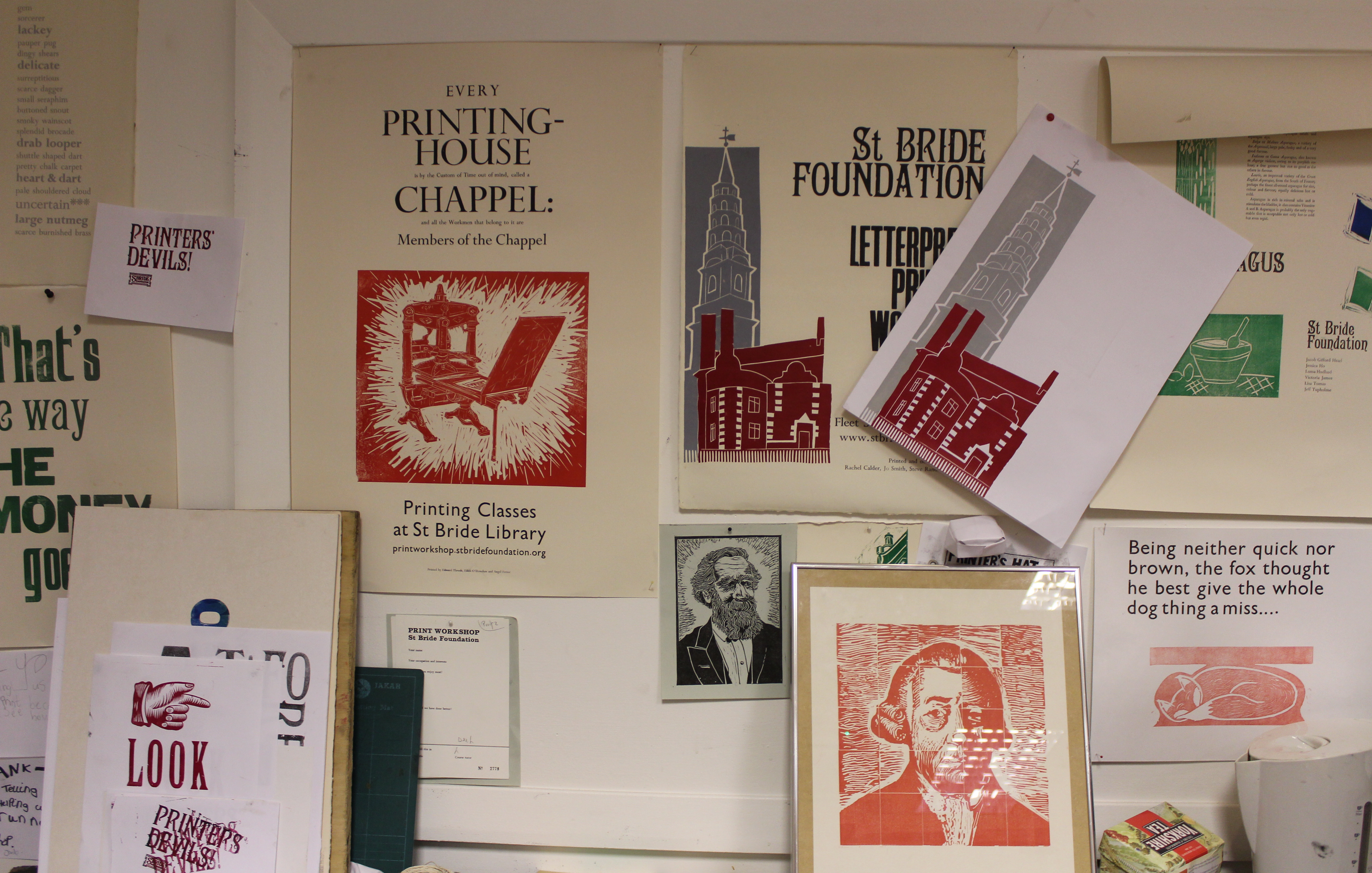 In the shadow of St Bride’s Church lies a gem of London’s printing history – the St Bride Foundation. The Foundation started life as an educational, social and cultural centre for local printers and students – and it would be hard to imagine a more fitting location given its proximity to Fleet Street. The 1894 red-brick Victorian building tucked away down St Bride Lane – no stranger to transformations while still retaining its print-based heritage, as we shall see – now contains a print workshop, library and theatre.