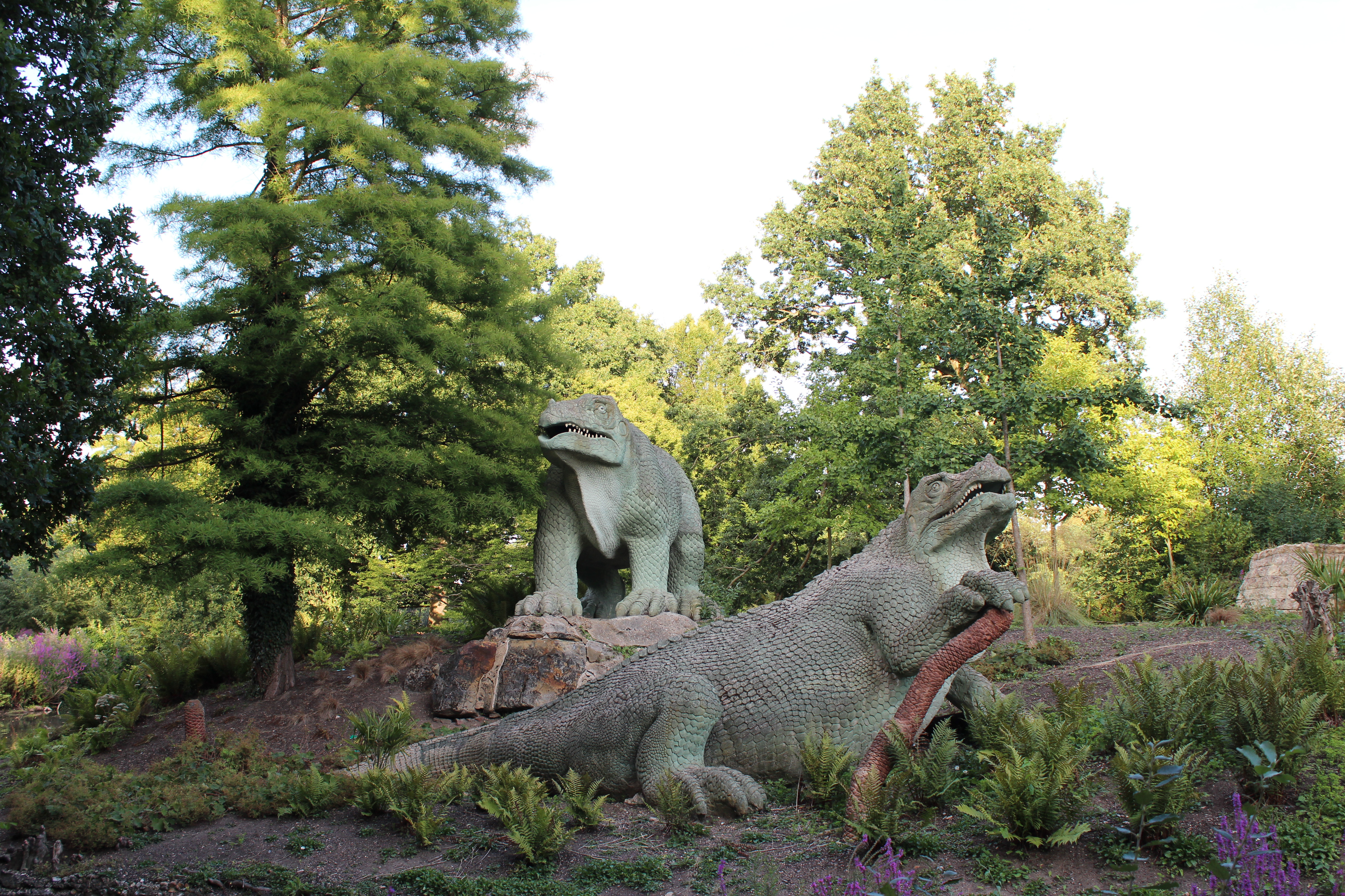 A hugely popular feature of the park today is the Crystal Palace Dinosaurs – life-sized models designed by Benjamin Waterhouse Hawkins, arrayed around a lake in the south-east corner of the park. These constitute the first ever sculptures of dinosaurs, unveiled in 1854 as part of the renovation of the park. In fact, they are not actually all dinosaurs – some are extinct animals. In true Victorian style, Hawkins threw a dinner for 21 guests inside one of the models on New Year’s Eve in 1853. At one point the models were so neglected they were covered with foliage, but were restored in 1952 and again in 2002.