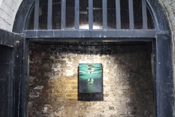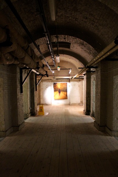 But back to the art… London-based Benney has a studio at Somerset House – which also explains why his works suit the space so well. Night Paintings includes some works featuring an interesting use of resin and a number of water-based subjects. It was raining on my first visit to this exhibition and the watery works seemed well suited to the mysterious, damp, enclosed environment, which was literally dripping in places. The shadowy, paved alleyways of the lightwells, with their individual works placed inside the alcoves, lead the viewer neatly round to the Deadhouse, where the larger body of works are found.